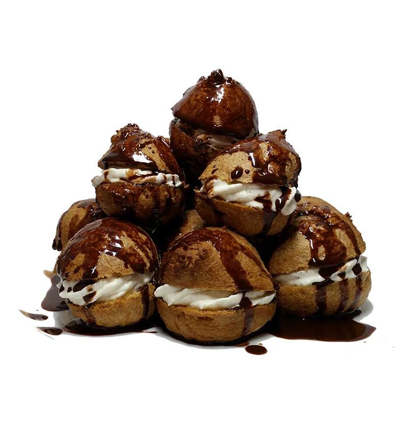 Conventional choux pastry is quite hard to prepare and is considered the supreme discipline of baking doughs. The fluffy textures comes from “cooking” the dough in a pan before baking which leads to coagulation of the wheat protein (gluten) and agglutination of the starch. Afterwards the dough is mixed with eggs, shaped and baked. During baking the dough rises and “tears up” the partially already solidified texture of the dough – resulting in big holes and a very fluffy texture which is perfect for delicious fillings.