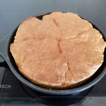 - Prepare the toast bread dough according to instructions. Shape the dough into a loaf with wet hands and place it first on baking paper and then into a round small baking tin or oven-proof pan (about 18 cm in diameter) and bake it until done.