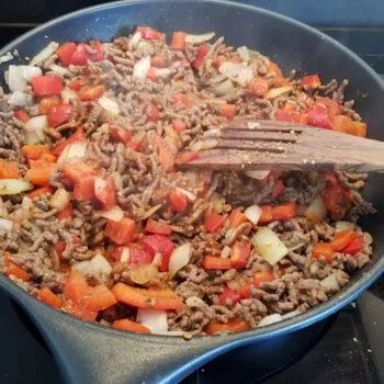 - Meanwhile, cook mince with onions and bell pepper in ghee until they’re crispy and add salt and spices as you like. Finally, stir in the tomato paste.