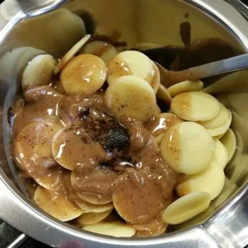 1. Melt all ingredients together in a warm water bath (no more than 40 °C) and stir until the cream powder is fully dissolved. Let the mass cool down to approx. 28 – 30 °C and pour into a silicon mould or a container layered with aluminum foil. Place the mould in the refrigerator until set …. AND ENJOY!